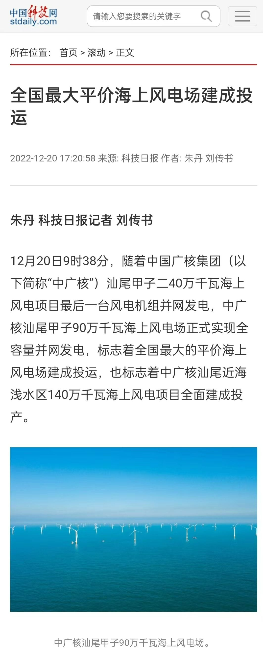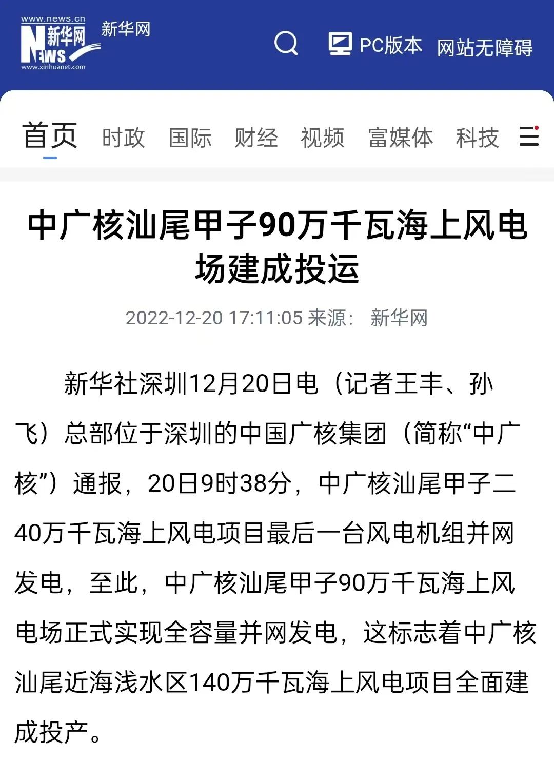 12月20日9時38分,隨著中國廣核集團(tuán)(簡稱“中廣核”)汕尾甲子二40萬千瓦海上風(fēng)電項目最后一臺風(fēng)電機組并網(wǎng)發(fā)電,中廣核汕尾甲子90萬千瓦海上風(fēng)電場正式實現(xiàn)全容量并網(wǎng)發(fā)電,標(biāo)志著全國最大的平價海上風(fēng)電場建成投運,也標(biāo)志著中廣核汕尾近海淺水區(qū)140萬千瓦海上風(fēng)電項目全面建成投產(chǎn)。