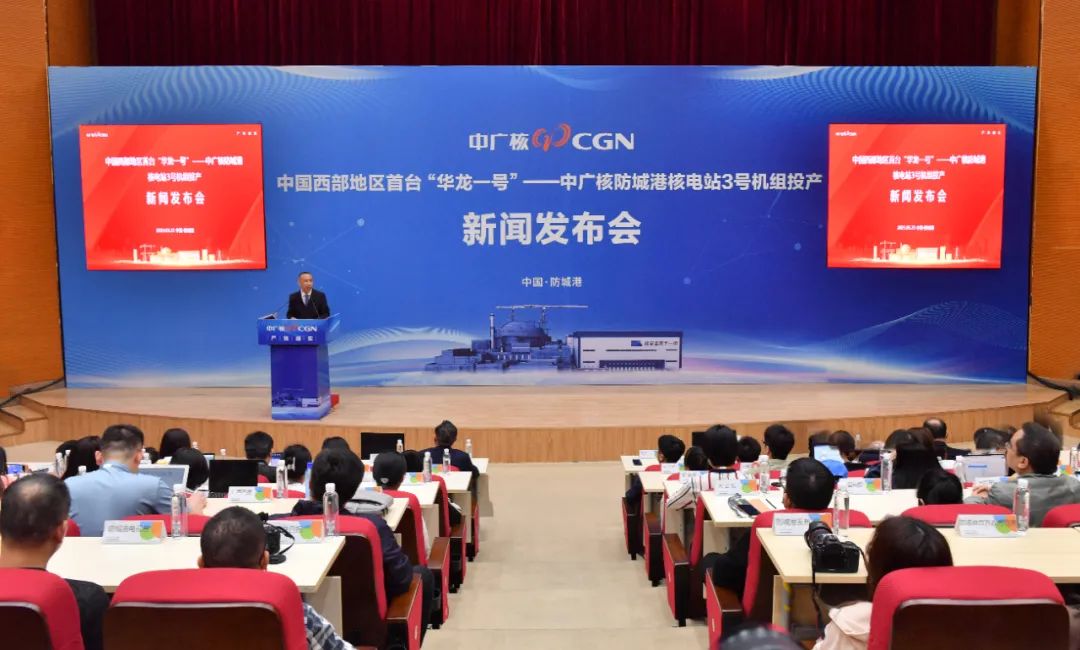 2023年3月25日,我國西部地區(qū)首臺“華龍一號”核電機組——中廣核廣西防城港核電站3號機組投產(chǎn)新聞發(fā)布會在防城港核電基地召開。