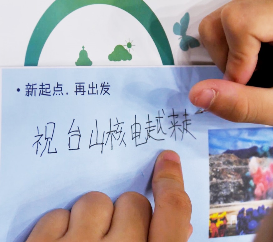 “我今天參加活動后看到核電有很大前途。希望所有的兒女都好好努力,奮發(fā)圖強(qiáng)!”長孫俠哥叔叔寫下了自己對兒女的期望。