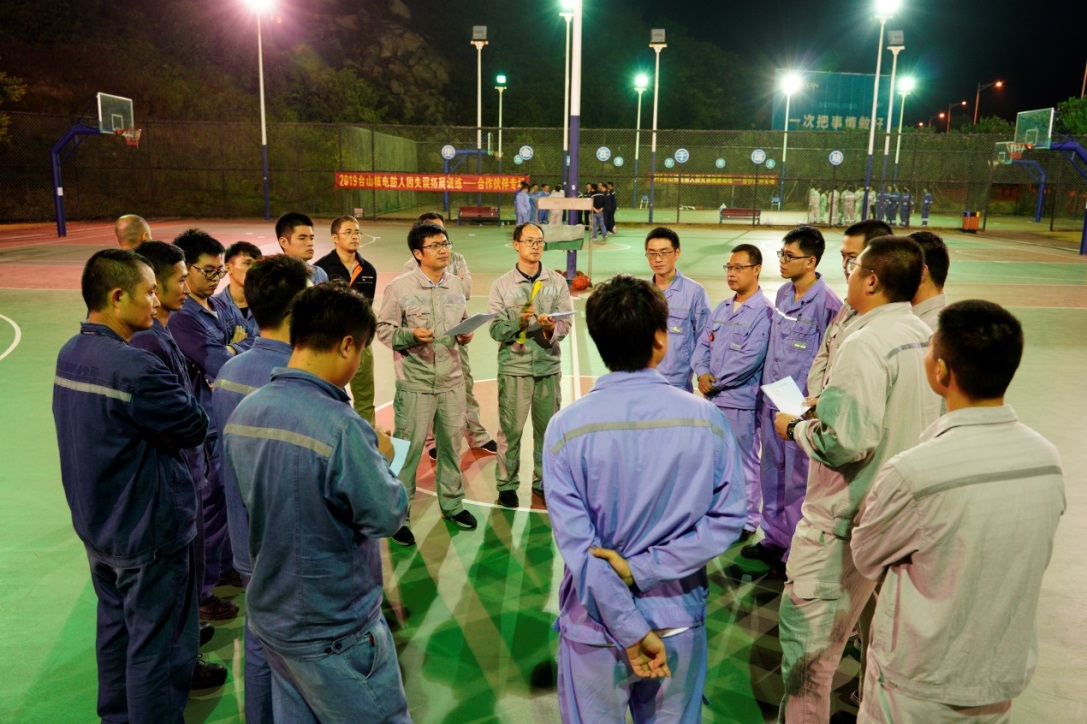 11月27日晚,臺山核電零人因工作組在一期籃球場開展防人因失誤拓展訓(xùn)練,生產(chǎn)線六大合作伙伴單位(中核檢修、淮電檢修、姚孟電力、廣東拓奇、東北電力、北京平海)參加訓(xùn)練。
