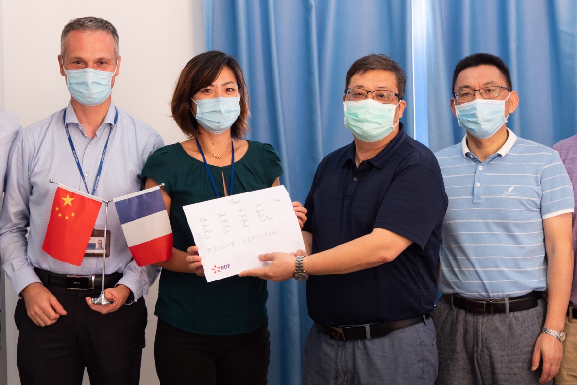 在新冠疫情發(fā)生后,臺(tái)山市第二人民醫(yī)院及時(shí)取消春節(jié)休假,醫(yī)護(hù)人員輪流值班堅(jiān)守崗位,還有部分醫(yī)護(hù)人員主動(dòng)參與到高速路口疫情監(jiān)測(cè)一線(xiàn)。臺(tái)山市第二人民醫(yī)院也是距離臺(tái)山核電項(xiàng)目所在地最近的定點(diǎn)發(fā)熱門(mén)診,在疫情防控的特殊時(shí)期,治愈了基地多家單位因感冒而引發(fā)不適的員工。杜金石向醫(yī)院在新冠疫情防控中的付出表達(dá)敬意和感謝。法方員工楊梅麗拿出自己父母的照片,說(shuō)父母雖然遠(yuǎn)在法國(guó),但也參與了本次捐款,想在祖國(guó)危難之時(shí),也盡自己的綿薄之力。醫(yī)院的院長(zhǎng)得知這是來(lái)自臺(tái)山核電法方友人的自發(fā)捐款后,驚訝之余滿(mǎn)是感激,連連說(shuō)著“感謝感謝”。作為一個(gè)臺(tái)山華僑捐贈(zèng)的醫(yī)院,這也是他們第一次收到來(lái)自法國(guó)人民的捐款。院長(zhǎng)當(dāng)即說(shuō)要把這個(gè)故事寫(xiě)入醫(yī)院的歷史。