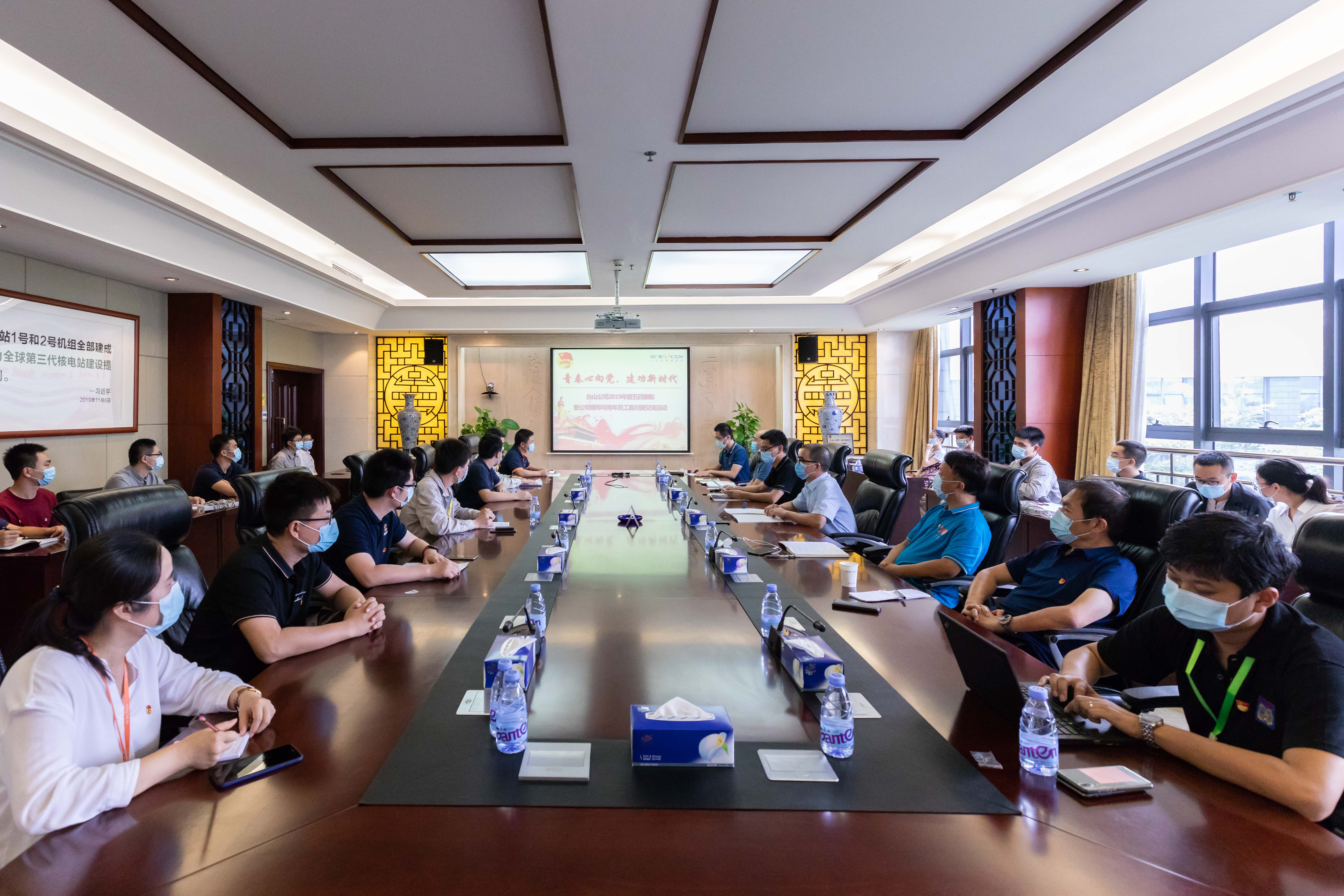 5月27日下午,臺山核電團委在01樓組織召開“青春心向黨?建功新時代”五四表彰暨青年員工交流活動,公司黨委委員王躍青出席本次活動。