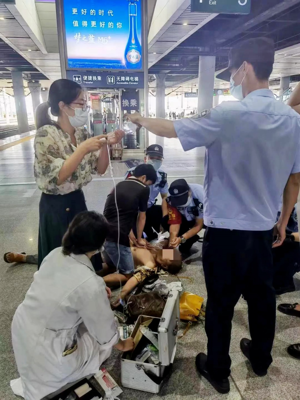 大概過(guò)了一分鐘、完成兩三個(gè)循環(huán)后,老人嘴張開了,慢慢有了呼吸。這時(shí)候來(lái)了一位女性,說(shuō)自己是一名ICU護(hù)士,簡(jiǎn)單了解老人的情況后,讓謝穩(wěn)振把老人的皮帶松開,繼續(xù)進(jìn)行人工呼吸。再后來(lái),又來(lái)了一名車站值班的男性醫(yī)生加入救援,有專業(yè)的醫(yī)護(hù)人員接力施救后,他的動(dòng)車也快要關(guān)門,交待幾句,他就走了。