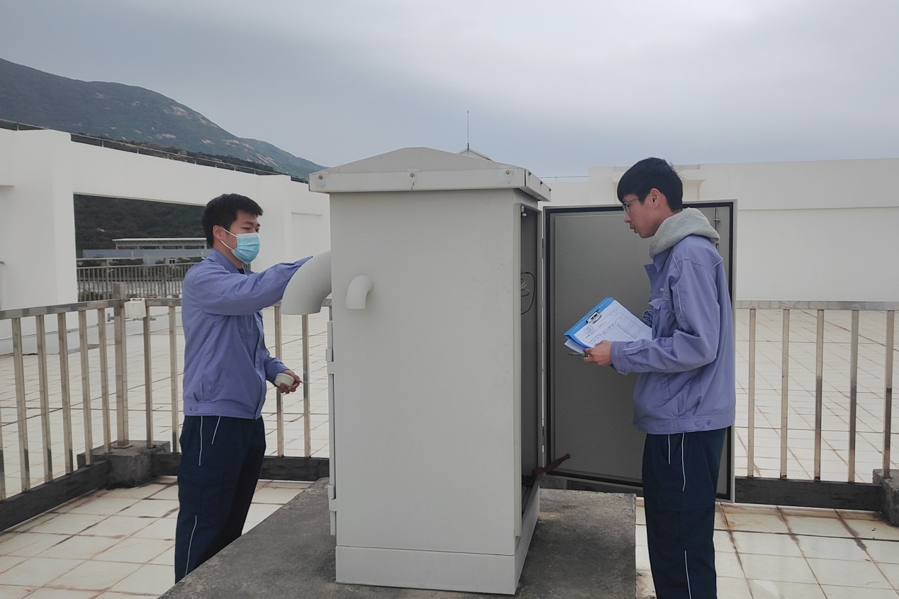 ▲化學(xué)環(huán)保部環(huán)境監(jiān)督科李伏錫和劉杰聰在進(jìn)行系統(tǒng)巡檢。
