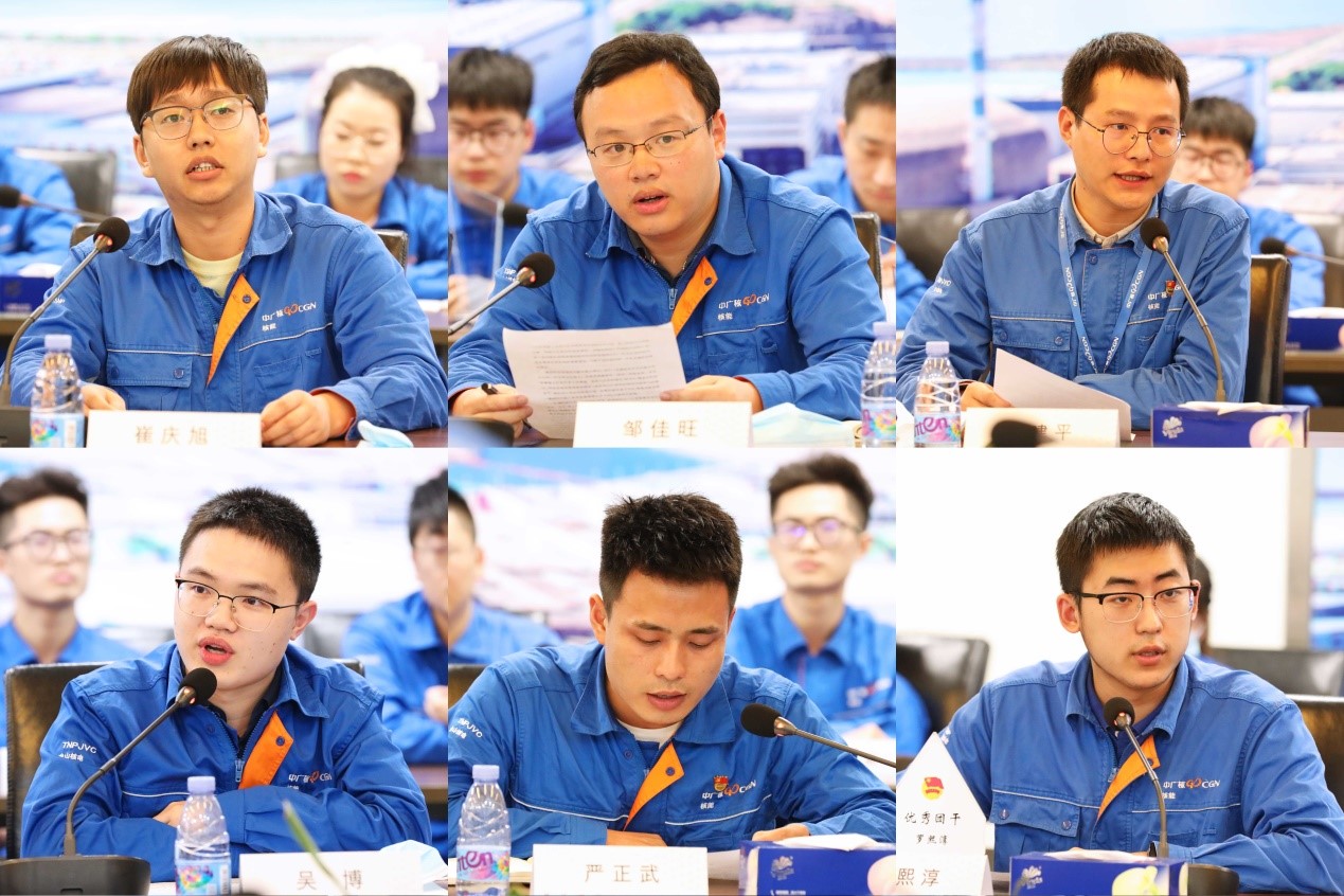 中央企業(yè)青年文明號代表生產(chǎn)服務部崔慶旭、公司青年標兵代表運行部鄒佳旺、公司青馬學員代表安全防護部劉建平、公司優(yōu)秀團干部代表安全板塊團支部吳博、公司技能競賽優(yōu)秀組織單位代表運行部嚴正武、公司新員工代表設備管理部羅熙淳等結合各自領域工作實際,做了分享交流。六名代表從不同視角表達了自己在工作中的成長感悟,展現(xiàn)了臺山核電團員青年的靚麗風采。