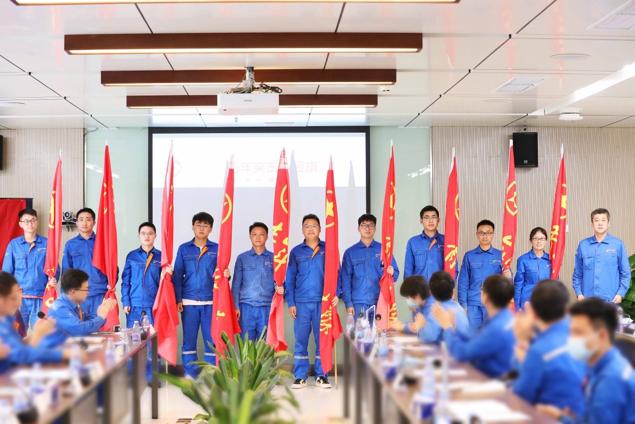 為保證臺山核電各項工作順利推進,助力圓滿完成年度攻堅任務,臺山核電各級團組織開展“學習黨的二十大精神、爭當新時代青年先鋒”崗位建功活動,組建了28支青年突擊隊,以促進青年在崗位上長才干、在實踐中作貢獻。會上,10支青年突擊隊代表依次接過隊旗,莊嚴宣誓,大聲喊出突擊目標,以響亮的青春強音展現(xiàn)了新時代臺核青年建功新時代的昂揚斗志。