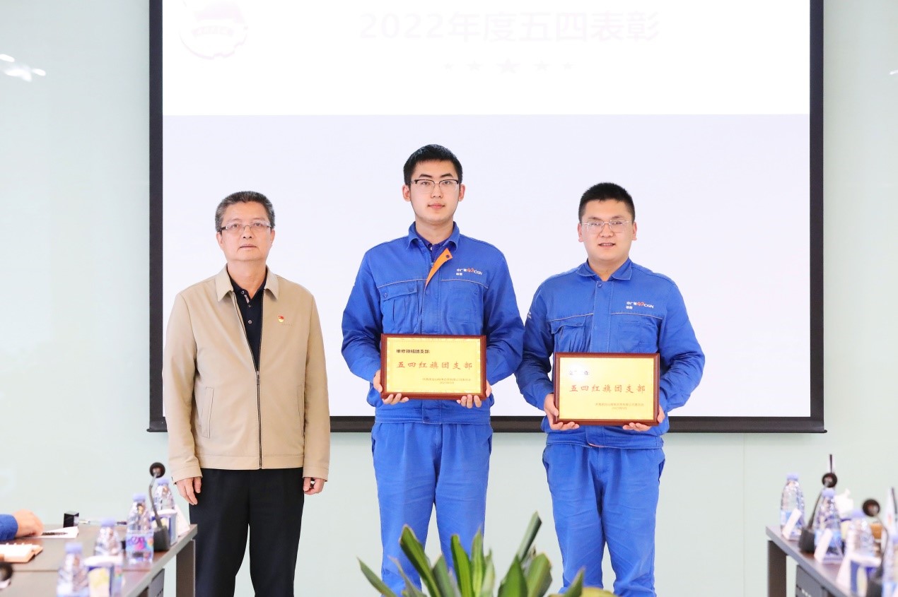 張啟文為公司五四紅旗團支部代表頒獎