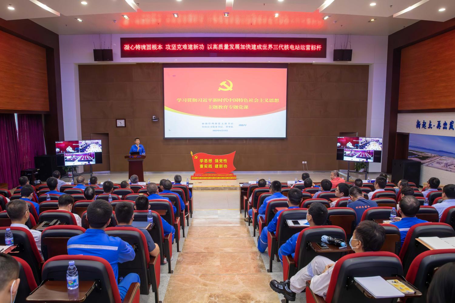 劉海軍以《凝心鑄魂固根本,攻堅(jiān)克難建新功,以高質(zhì)量發(fā)展加快建成世界三代核電站運(yùn)營標(biāo)桿》為題,結(jié)合主題教育學(xué)習(xí)體會和臺山核電發(fā)展實(shí)際,從“強(qiáng)化理論武裝,在學(xué)懂弄通做實(shí)上下功夫,用習(xí)近平新時代中國特色社會主義思想凝心鑄魂”“主動擔(dān)當(dāng)作為,自覺用好‘六個堅(jiān)持’,準(zhǔn)確把握臺山核電新階段高質(zhì)量發(fā)展方向”“保持戰(zhàn)略定力,忠誠履職盡責(zé),堅(jiān)定不移推動臺山核電新階段高質(zhì)量發(fā)展”三個方面,從理論邏輯、歷史邏輯、實(shí)踐邏輯層層遞進(jìn),深刻闡明了臺山核電作為中法兩國在華最大能源合作項(xiàng)目,是在習(xí)近平新時代中國特色社會主義思想逐步形成和發(fā)展中成長起來的。