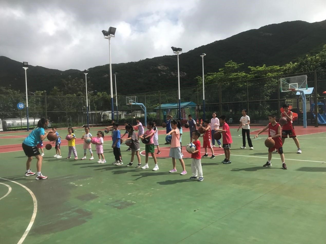 籃球場(chǎng)上,二十多名孩子正在教練指導(dǎo)下學(xué)習(xí)籃球運(yùn)球技巧,慢慢熟悉了球感、節(jié)奏感。