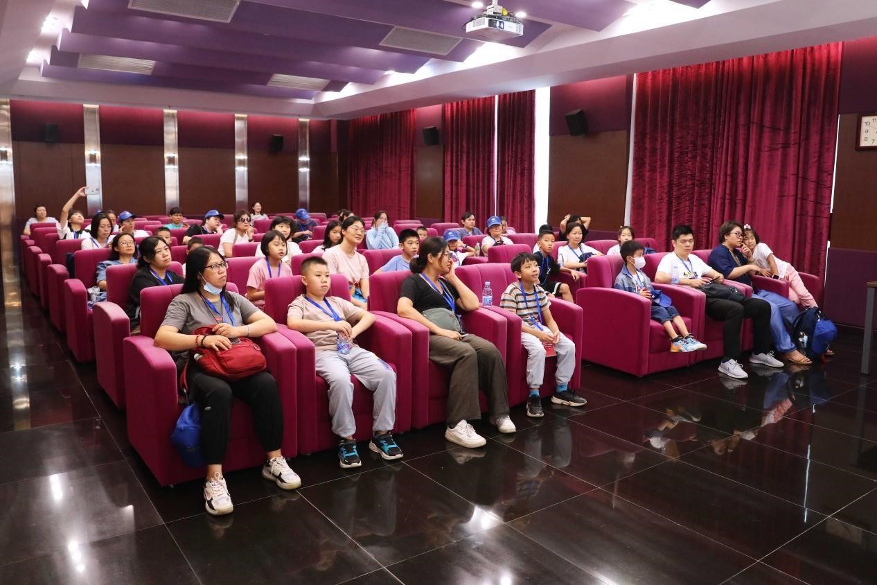 在公司01樓戛納觀影廳,學生和家長們觀看了臺山核電首堆工程紀錄片,了解臺山核電的建設歷程。