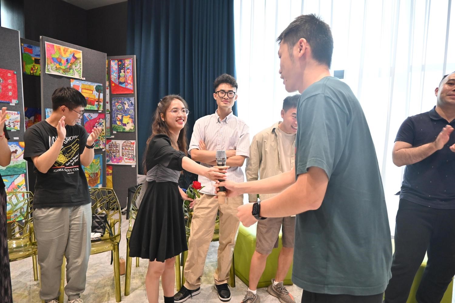 隨后,活動(dòng)正式進(jìn)入第一個(gè)環(huán)節(jié)——“你畫我猜”。參與者們根據(jù)詞版上的詞匯進(jìn)行即興表演,其他人則嘗試猜出畫者的意圖。歡聲笑語(yǔ)不斷,大家通過(guò)比劃猜謎的方式進(jìn)一步增進(jìn)了彼此的了解,展現(xiàn)了各自的創(chuàng)意和幽默。