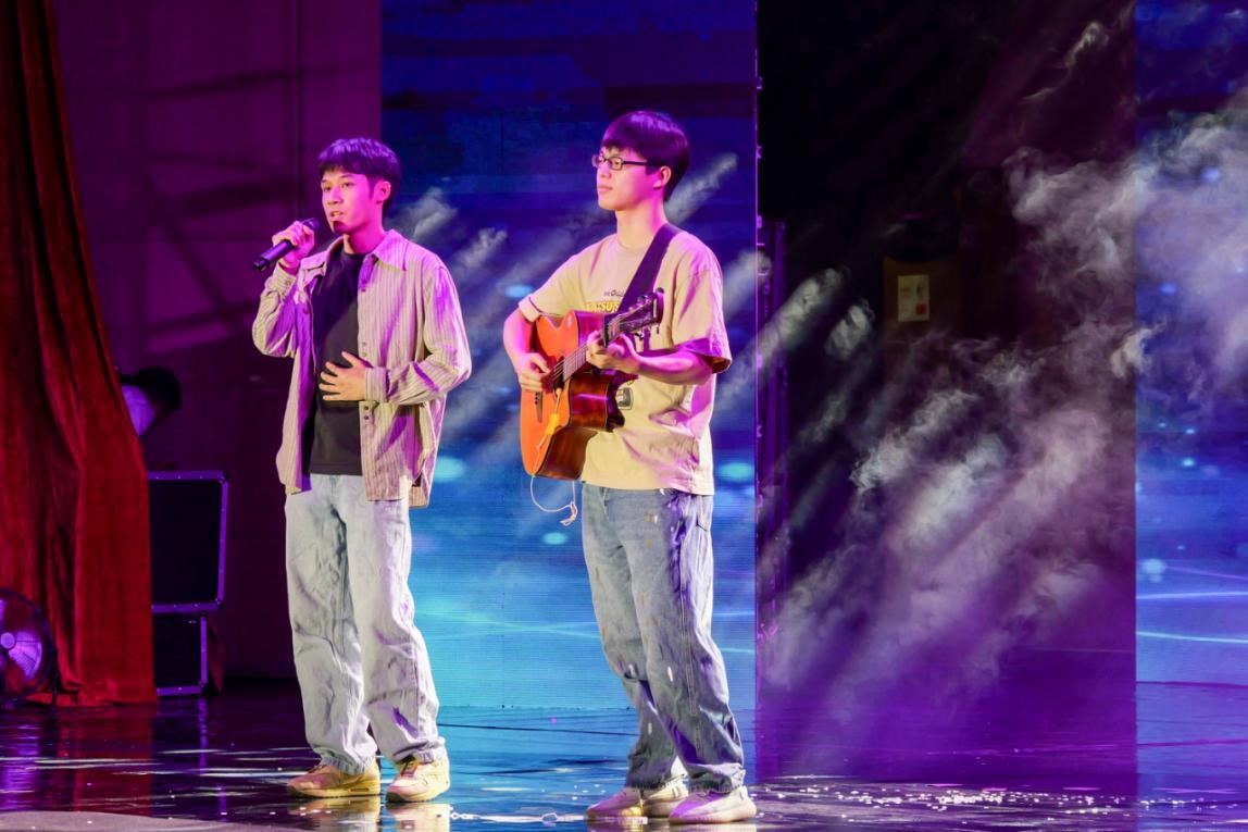 來自臺(tái)山核電運(yùn)行部的李燁、劉乙超帶來吉他彈唱《生如夏花》,播撒青春氣息。