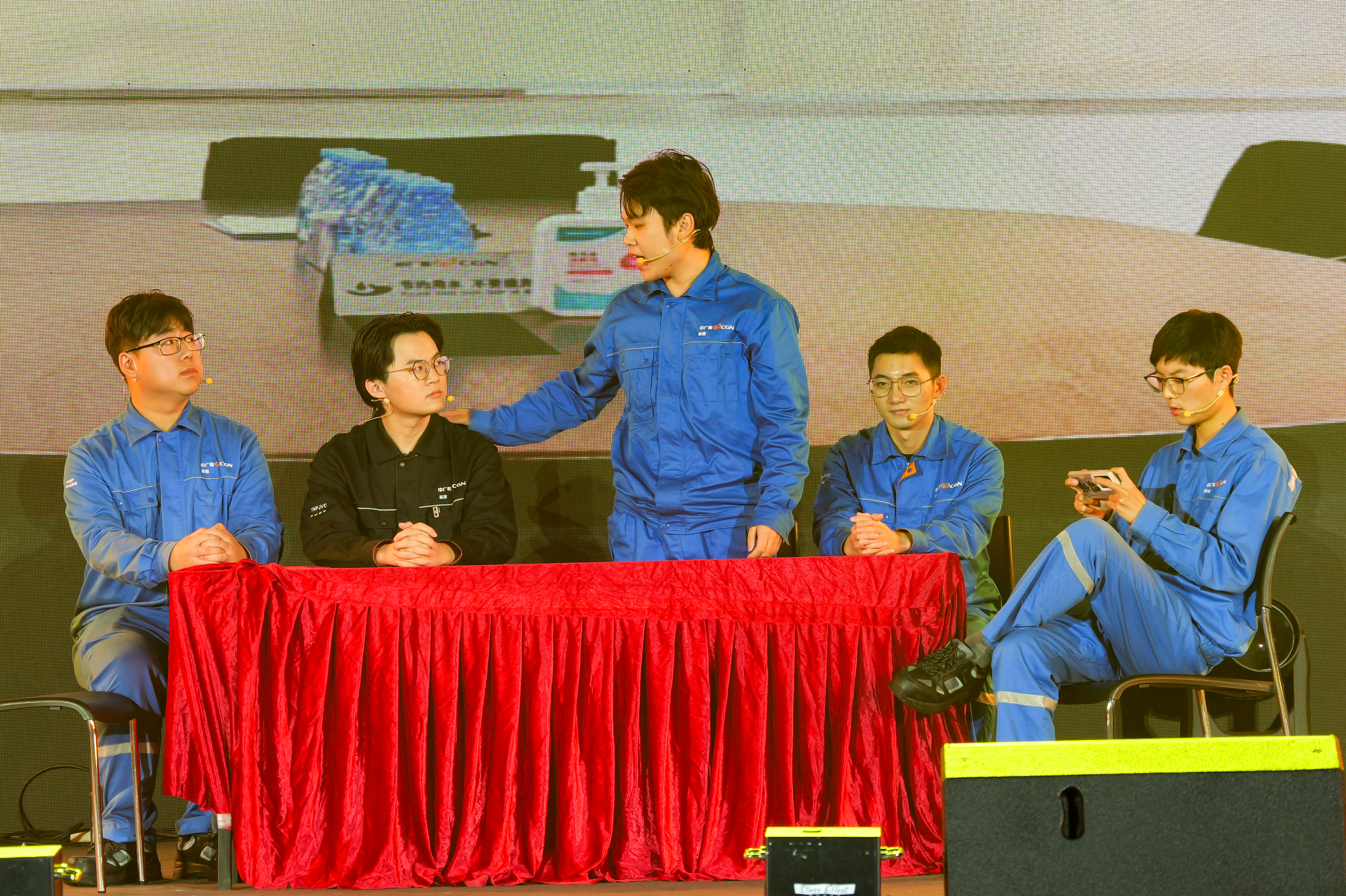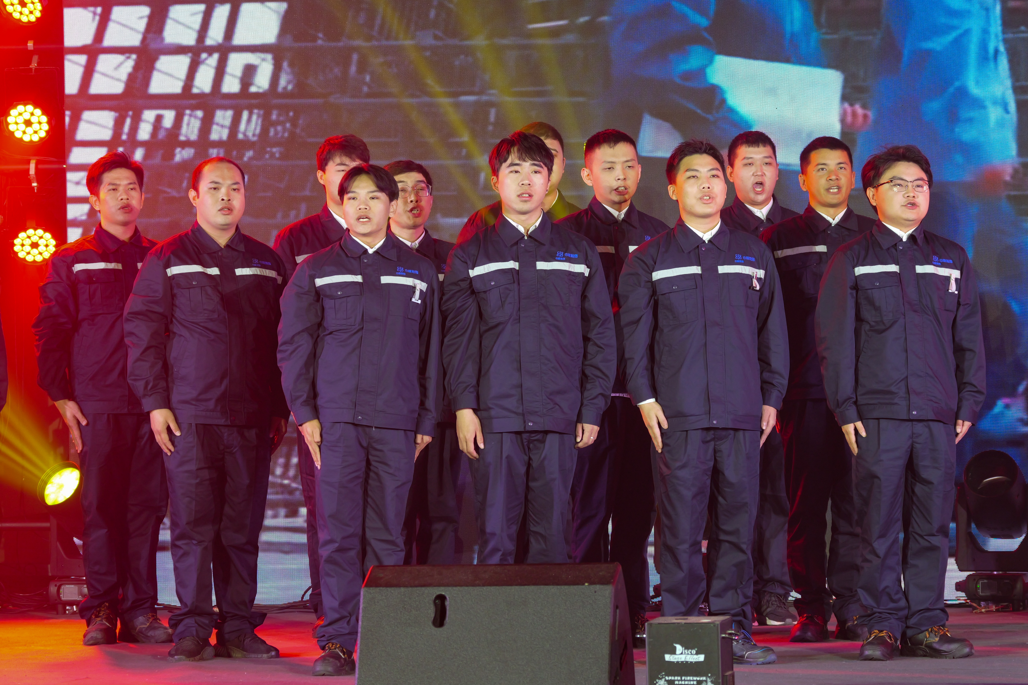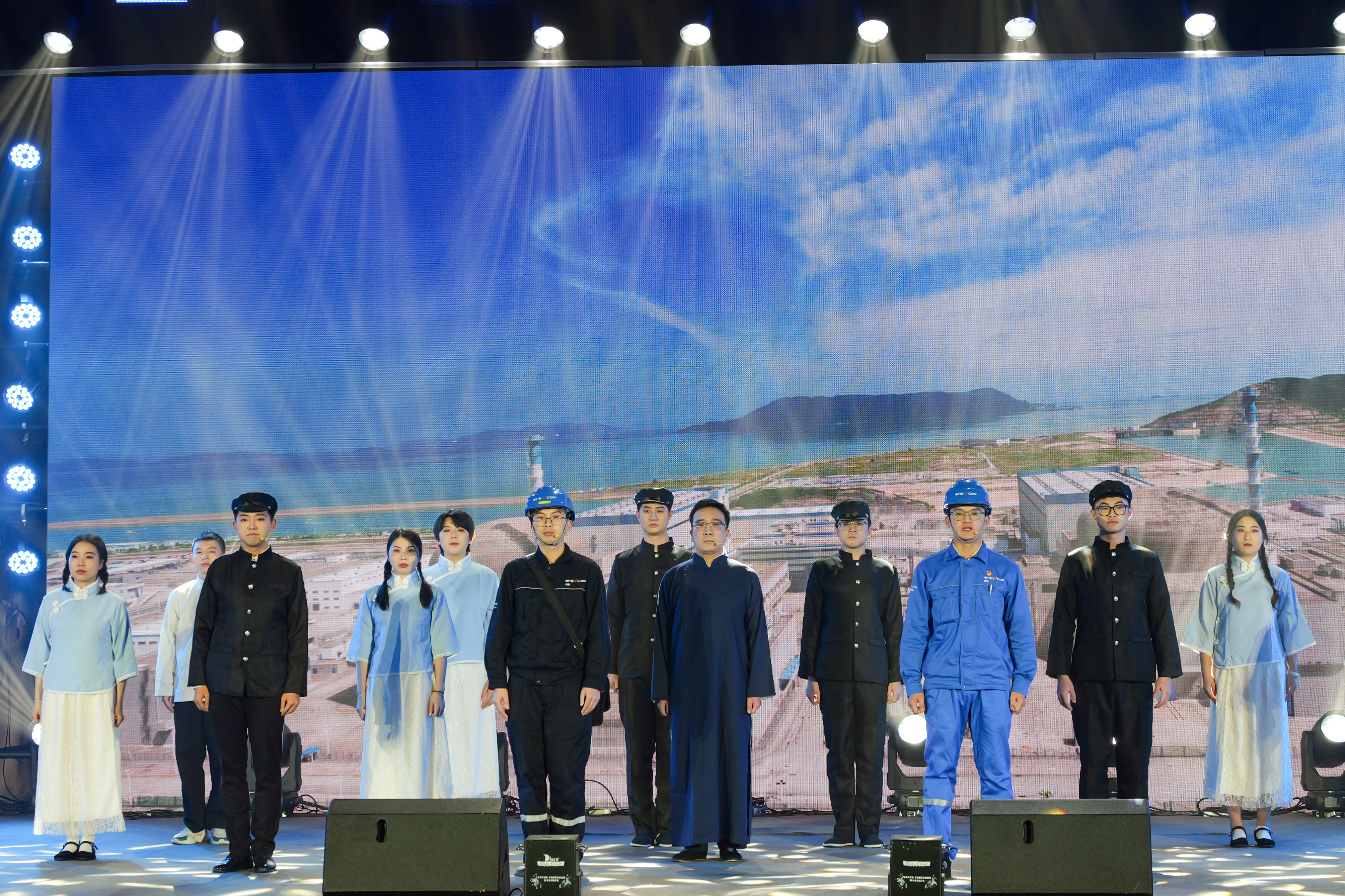 員工們自編自演、精心準備的節(jié)目引得現(xiàn)場掌聲熱烈,歡呼不斷?!肚斑M,我們使命在肩!》通過四幕畫面,表現(xiàn)了不同時期的青年人們用堅守初心、勇?lián)姑囗憘鞒械臅r代最強音,為核電、為國家貢獻自己的青春力量;《核電寶寶座談會》以日常座談為引線,幽默詼諧的語言風格逗得觀眾笑聲連連,而隱藏在這背后的員工需求及建議也在他們的妙語連珠中被一一傳達;核動力樂隊帶來的《光輝歲月》及改編版《月亮代表我的心》極富感染力,成功炒熱現(xiàn)場氛圍,觀眾們不由得跟隨旋律揮舞起手中的應(yīng)援燈,沉浸在美妙的音樂中;《燈火里的中國》呈現(xiàn)了萬家燈火里的美好生活,表達了對中國的祝福,愛國情懷在婀娜的舞姿、清絕的歌聲中展現(xiàn)得淋漓盡致……