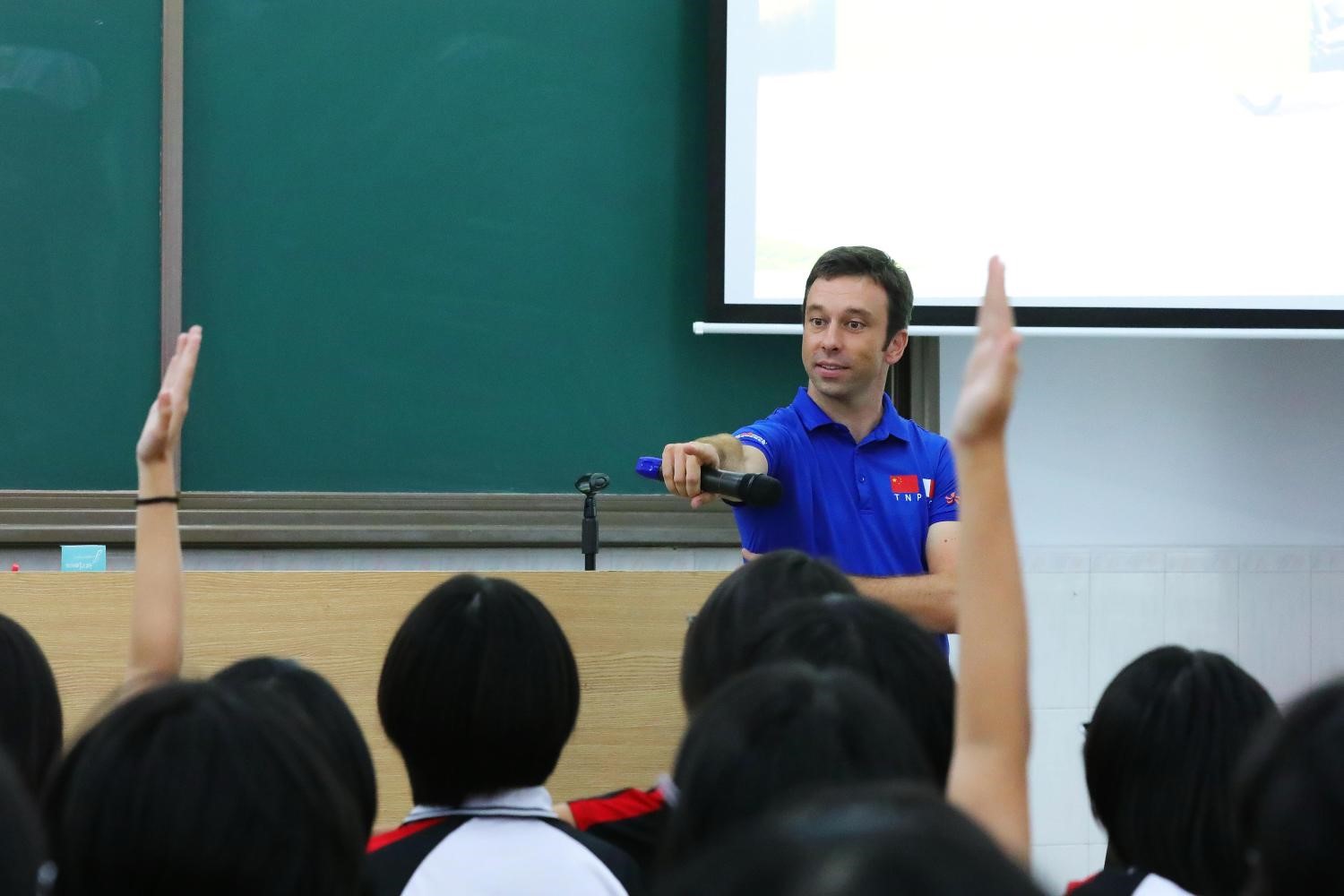 “老師,核電站安全嗎?”“老師,你為什么會(huì)來(lái)中國(guó)建核電站?”“老師,你喜歡吃藍(lán)色奶酪嗎?”互動(dòng)環(huán)節(jié),一個(gè)一個(gè)的問(wèn)題讓Yoann應(yīng)接不暇。現(xiàn)場(chǎng)氣氛十分熱烈,歡笑聲和討論聲交織在一起。